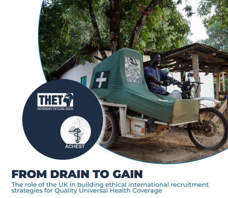 In 2021, THET worked in partnership with the African Centre for Global Health and Social Transformation (ACHEST) to run three symposia examining the role of the UK in relation to the international recruitment of health workers from Low- and Middle-Income Countries (LMICs). This report outlines the key findings and next steps.
